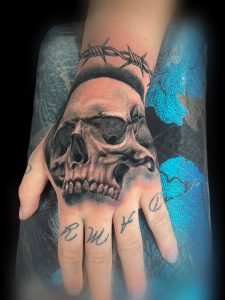 Tatuaje de calabera en la mano