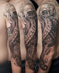Tatuaje de creaneo realista con tentaculos